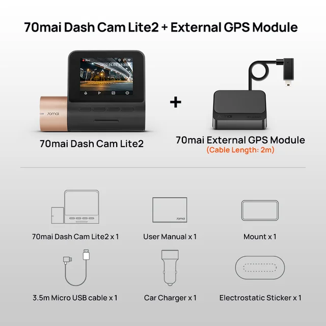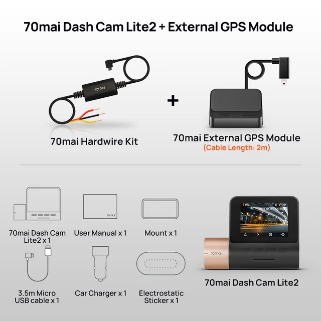 2022 70Mai Dash Cam Lite2 2-amp;#39;-amp;#39; Lcd Screen 70Mai D10 Car Dvr Lite 2 1080P External Gps Auto Recorder 24H Parking Support 130° Fov